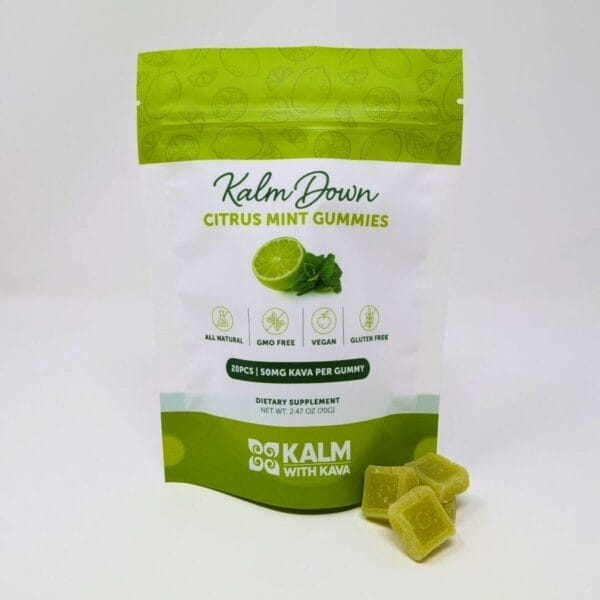 Kick back, relax, and find your calm with Kalm Down Gummies. Crafted with a soothing blend of kava extract and a refreshing citrus mint flavor, these vegan, gluten-free gummies are your go-to for stress relief and relaxation without the morning-after grogginess. Whether youโre easing out of a hectic day or simply seeking a moment of peace, these gummies offer a gentle, natural way to soothe anxiety and improve moodโanytime you need it.