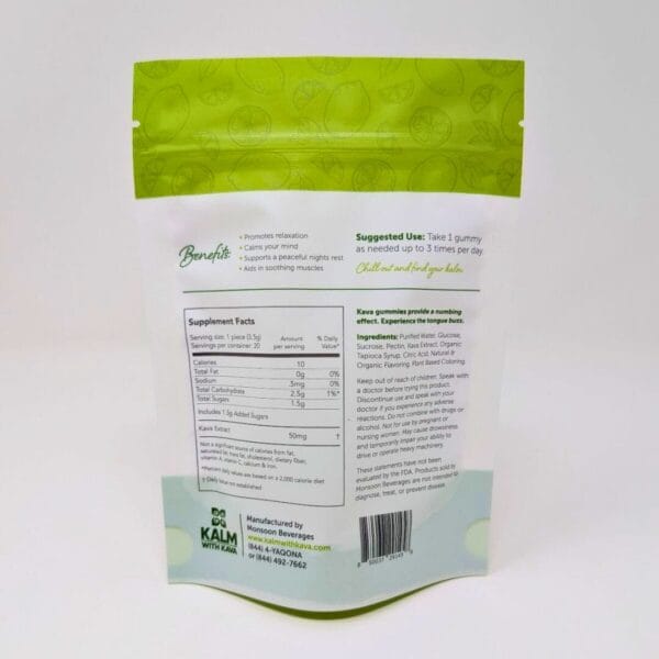 - Dosage: 50mg of pure kava extract per gummy